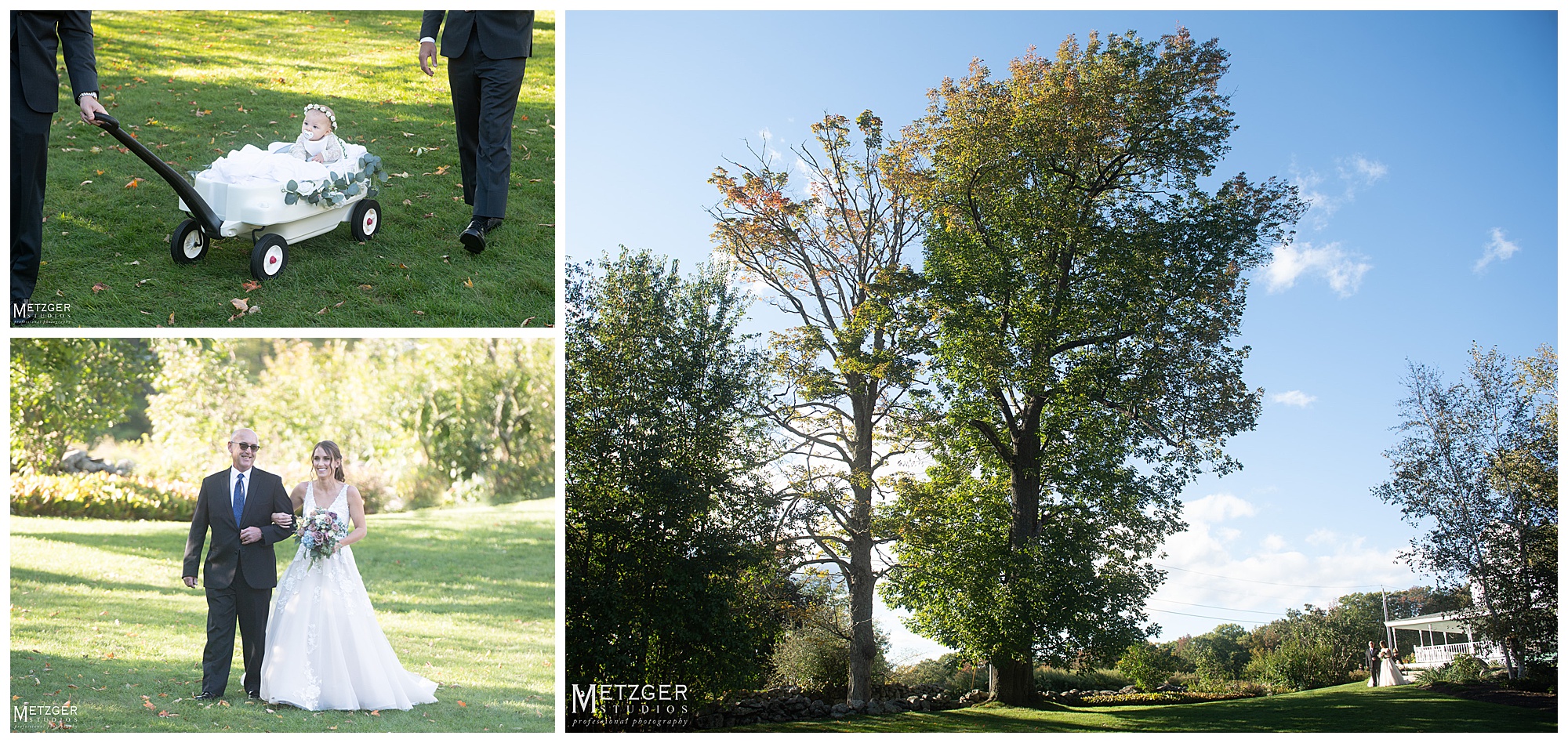 What better way to welcome’s in a beautiful October than photographing a wedding at the phenomenal Harrington Farm? No matter where we were on the day of Ryan and Jaclyn’s wedding, the landscape was breaming with the fantastic colors that the New England Fall is famous for. We started the day by photographing the bride and groom getting ready in their separate rooms. They decided not to do a first but we were able to take advantage of the fall foliage and gorgeous woods that flanked the property to get some fun shots of the groom and his groomsmen. We could not have asked for a more beautiful flower girl than their daughter. She simply stole the show. It was an intimate ceremony where they exchanged their vows. Afterward, we captured some classic shots of the bride and groom at the altar where they were married. We timed it in such a way that the Sunset just as we were wrapping up shots around the ground. You know you are in for one amazing party whenever the reception is emceed by the always great to work with the staff at You are never sure what kind of dance floor there might be even on a late Friday wedding. They tore it up from the first dance to the last. All-in-all, it was another great day to photograph a great wedding.