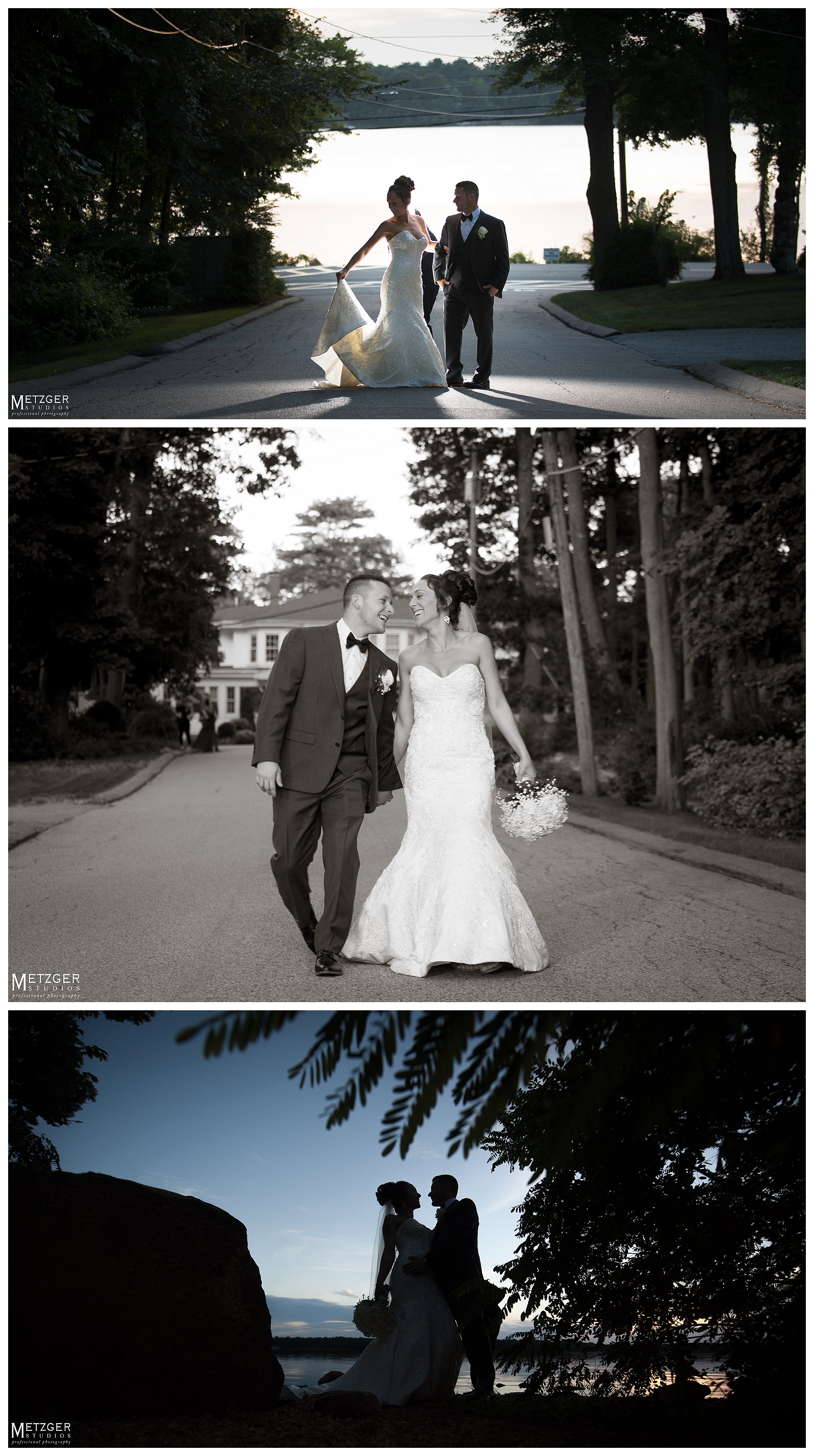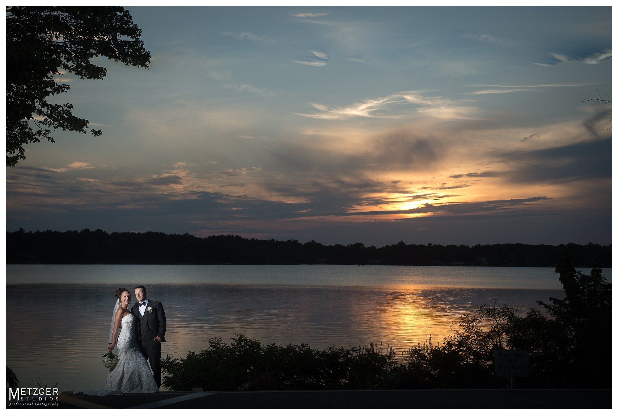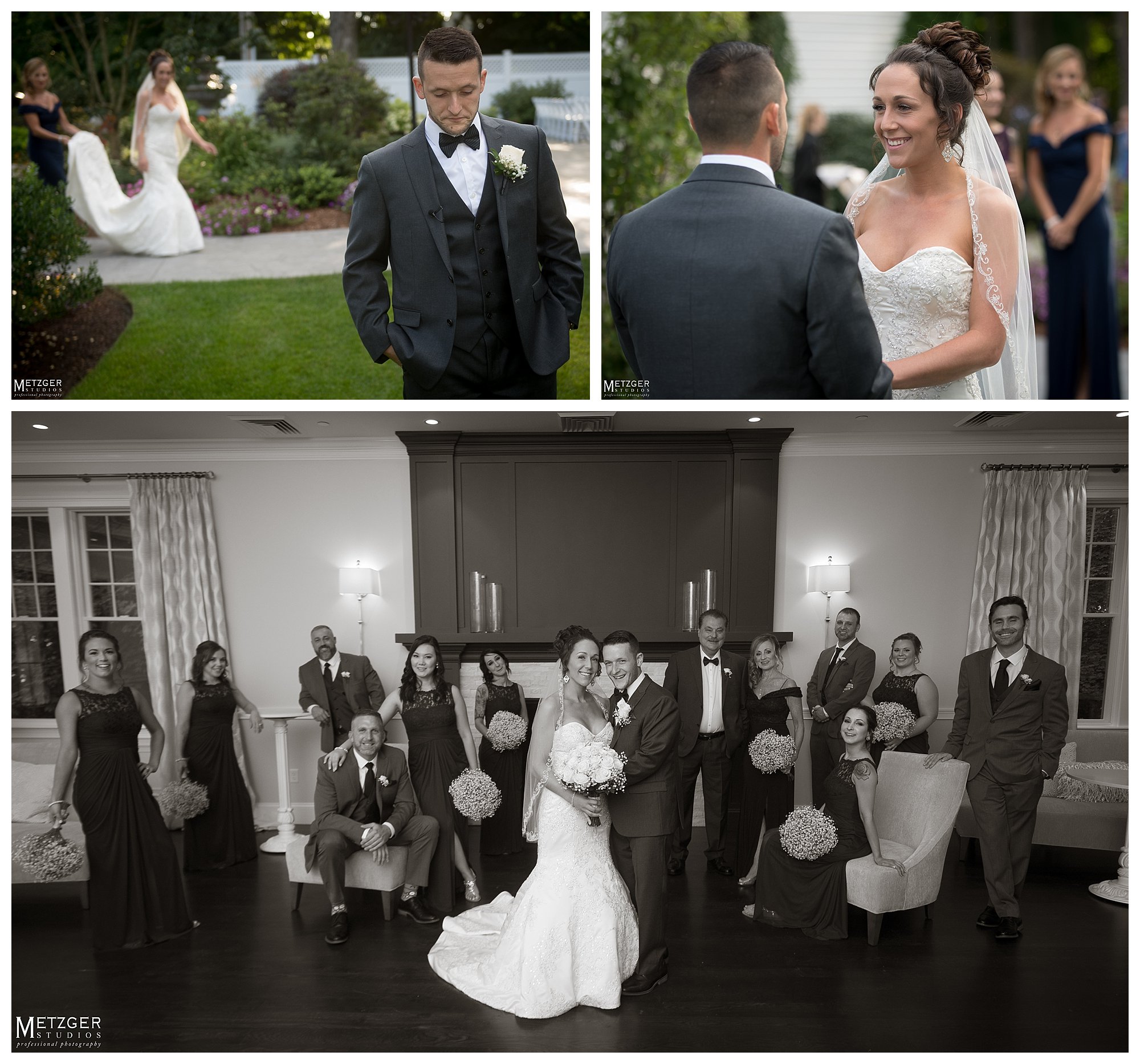When you work with a great group of people as much as I’ve worked with the folks at Saphire Estate in Sharon, MA they become like part of your family. That is why I was really excited when one of the former coordinators from the venue had his sister contact me to photograph her wedding. It made shooting Andrew and Courtney’s Saphire Estate Wedding feel more like a reunion than work. The day began with both bride and groom in the same hotel, but different rooms. It is always an interesting challenge trying to keep the first look from happening too soon. It’s a good thing I have had years of practice doing just that. As lovable as the two are, it is no wonder they had a large bridal party, with each bridesmaid and groomsmen being as fun and enjoyable to work with as the last. Unfortunately, just as it was time for the couple to have their scheduled first look all of their guests started to arrive. Thankfully, the experienced staff at Saphire Estate knew exactly what to do and the bride and groom were quickly ushered to a new location so that they could share this intimate moment only with each other. After what was a beautiful and intimate ceremony, we were able to take advantage of the gorgeous views one can only find along the shores of Lake Massapoag to get beautiful wedding photography of this amazing couple.