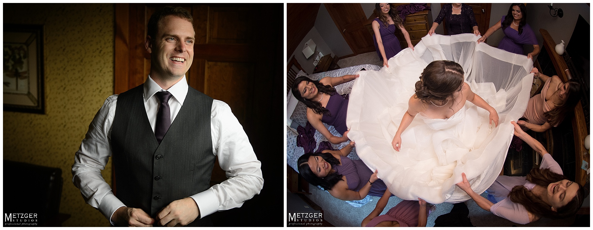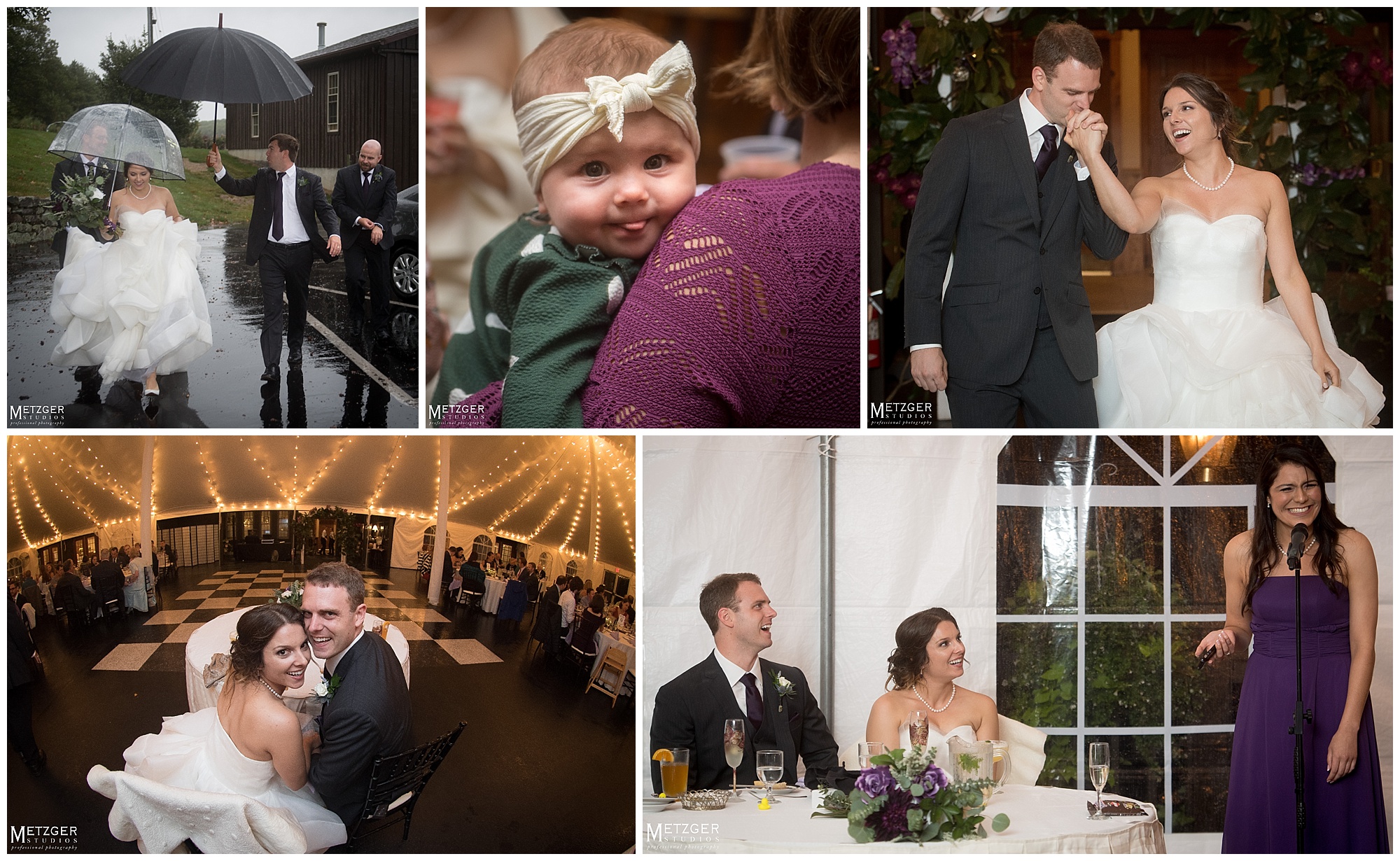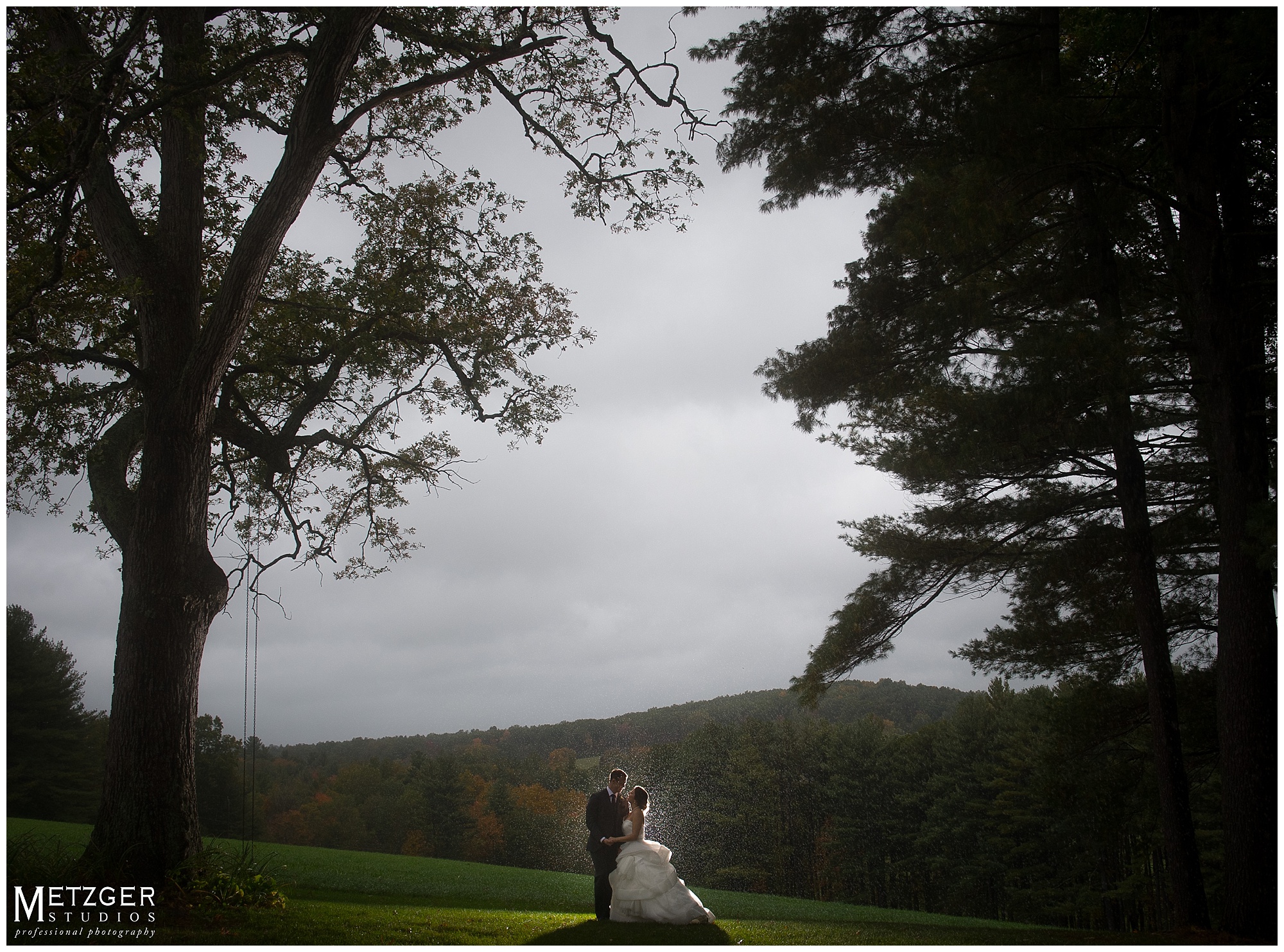 You know it’s going to be a good day when it begins and ends at a place like Zukas Hilltop Barn in Spencer MA. Having worked with Brent and Abbie during their engagement shoot, it was no surprise that this happy couple chose such a great place to have their wedding. There is never a dull moment with Brent and Abbie, something that is evident in the photography we were able to capture throughout the day. From getting ready straight through to the last dance, we were able to perfectly document both their special day and personalities with these unique images. Even though the unpredictable New England weather dampened their day and interfered with their outdoor ceremony, it could not dampen Brent and Abbie’s spirits…or their commitment to photography. At one point, this courageous couple faced wind and rain to capture the most breathtaking images of the day, giving merit to the old adage that a rainy wedding day is a sign of good fortune.