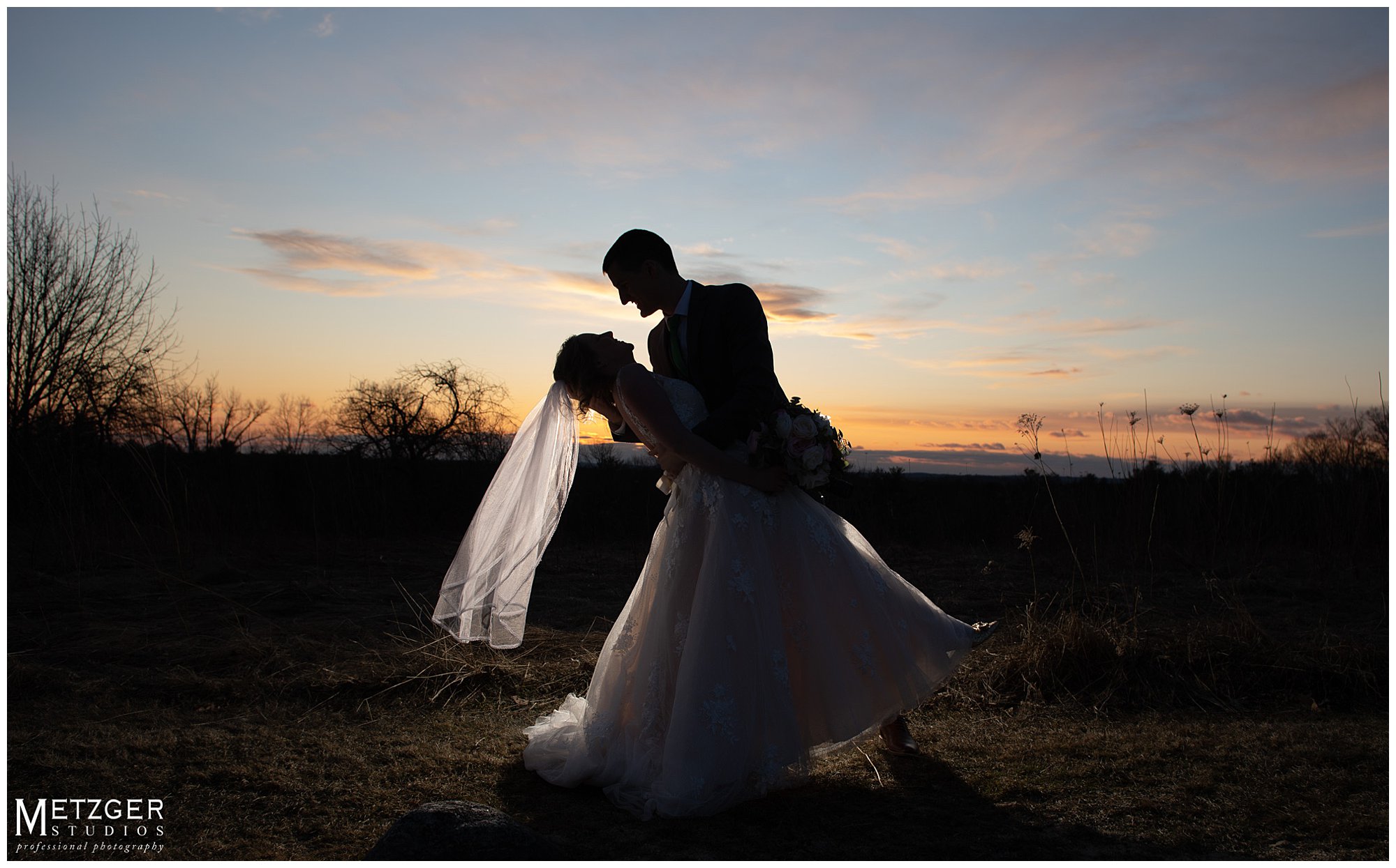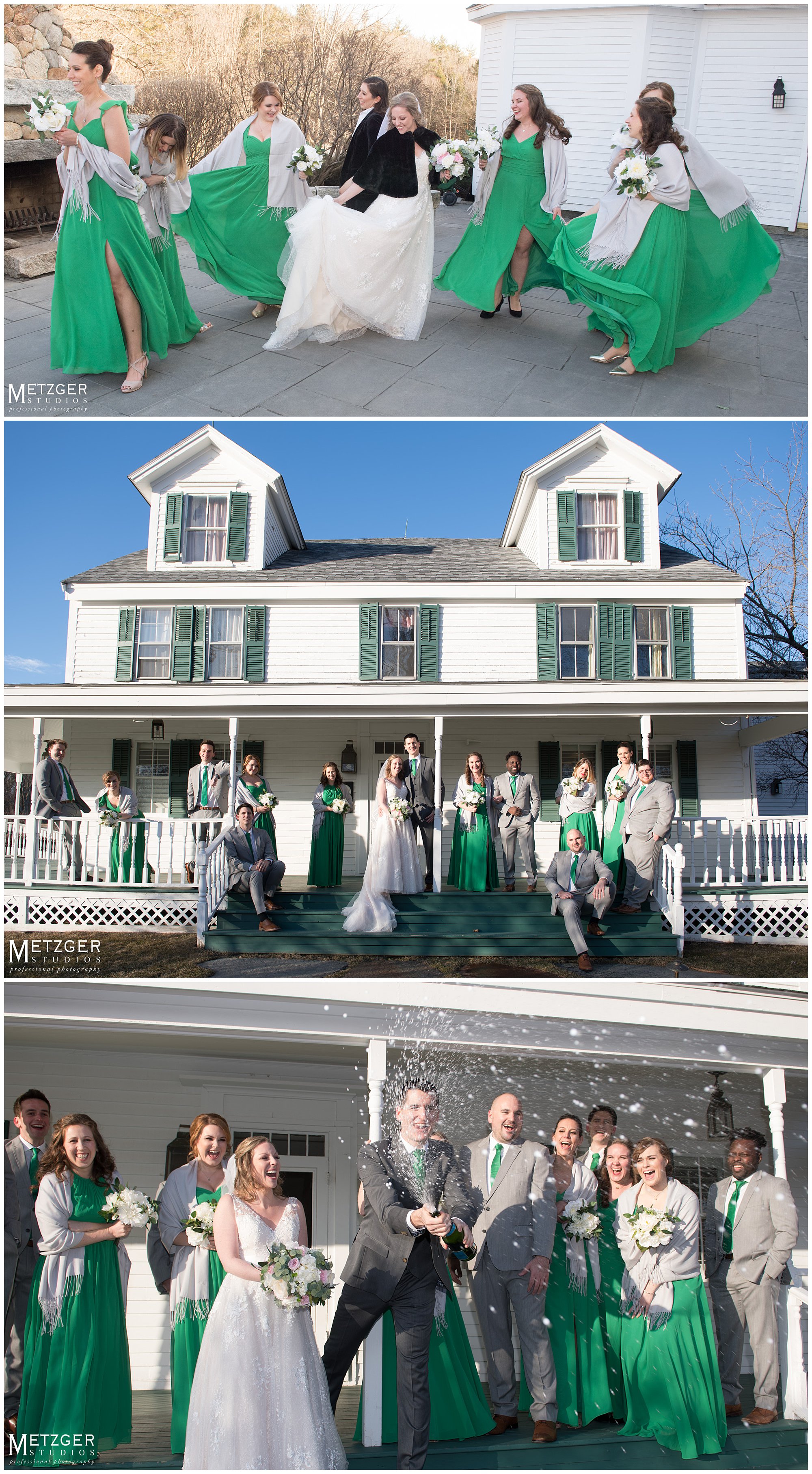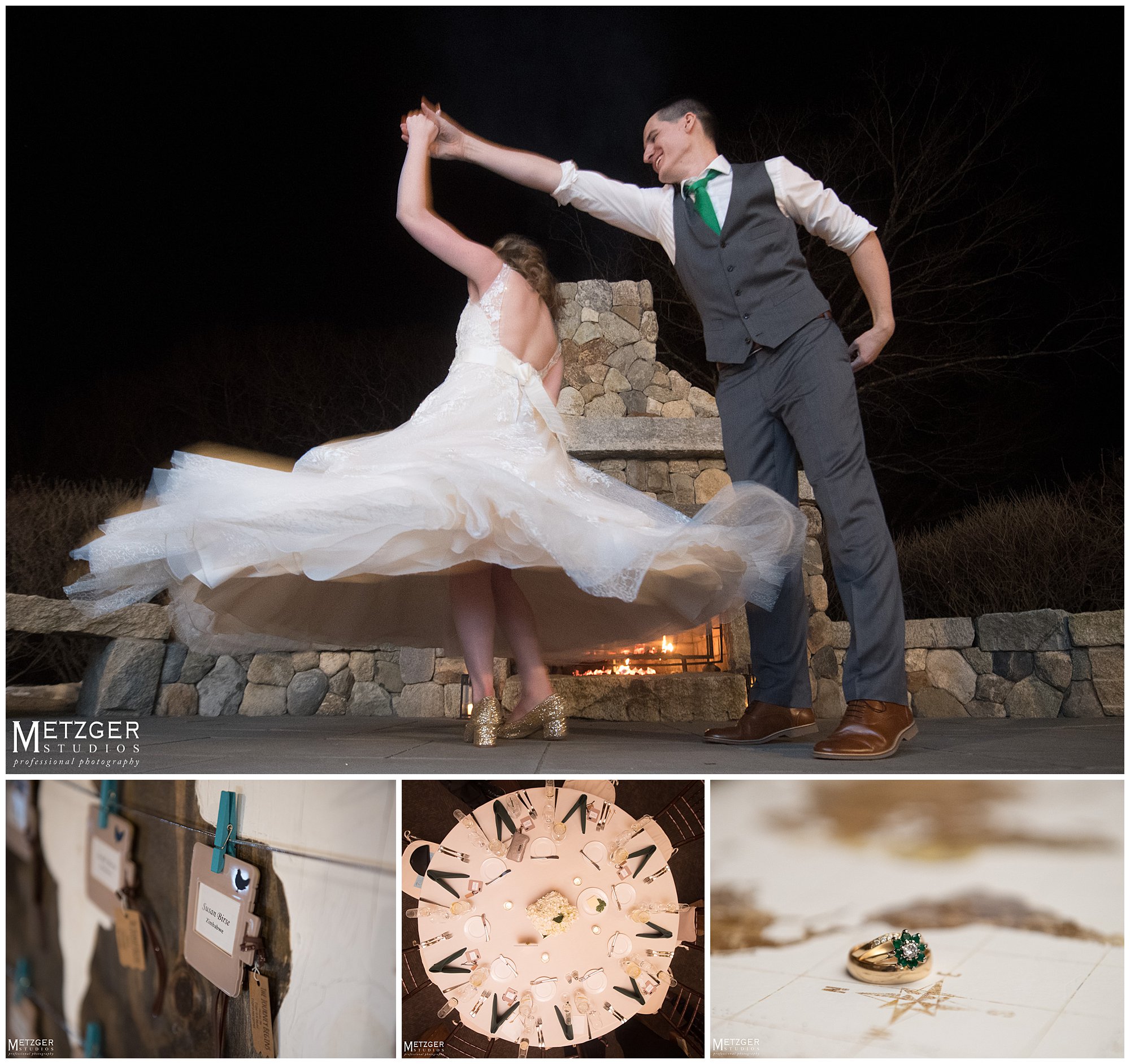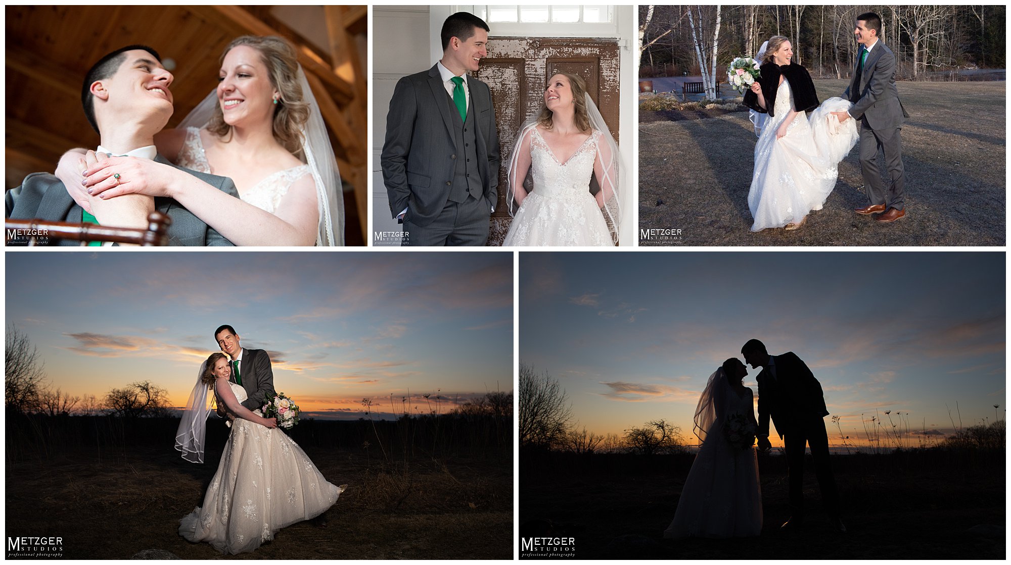 I have great admiration for any couple who choose to have the wedding in New England in the winter. Despite the fact we didn’t have any snow on the ground, we did get a great feel for the rust winter landscape. Not many brides would be outside in the cold in a sleeveless dress, but Sarah was not going to let the weather get in the way of an amazing sunset. There is no better place to shoot any time of year than Harrington Farm. All the photography from the getting ready to the last dance was done on-site. What is so nice about the venue, is that any way you turn the camera there is either a great background and amazing light. Nick and Sarah were having so much fun it made our jobs very easy. Everything came together from the getting ready straight through to the end of the last dance.
